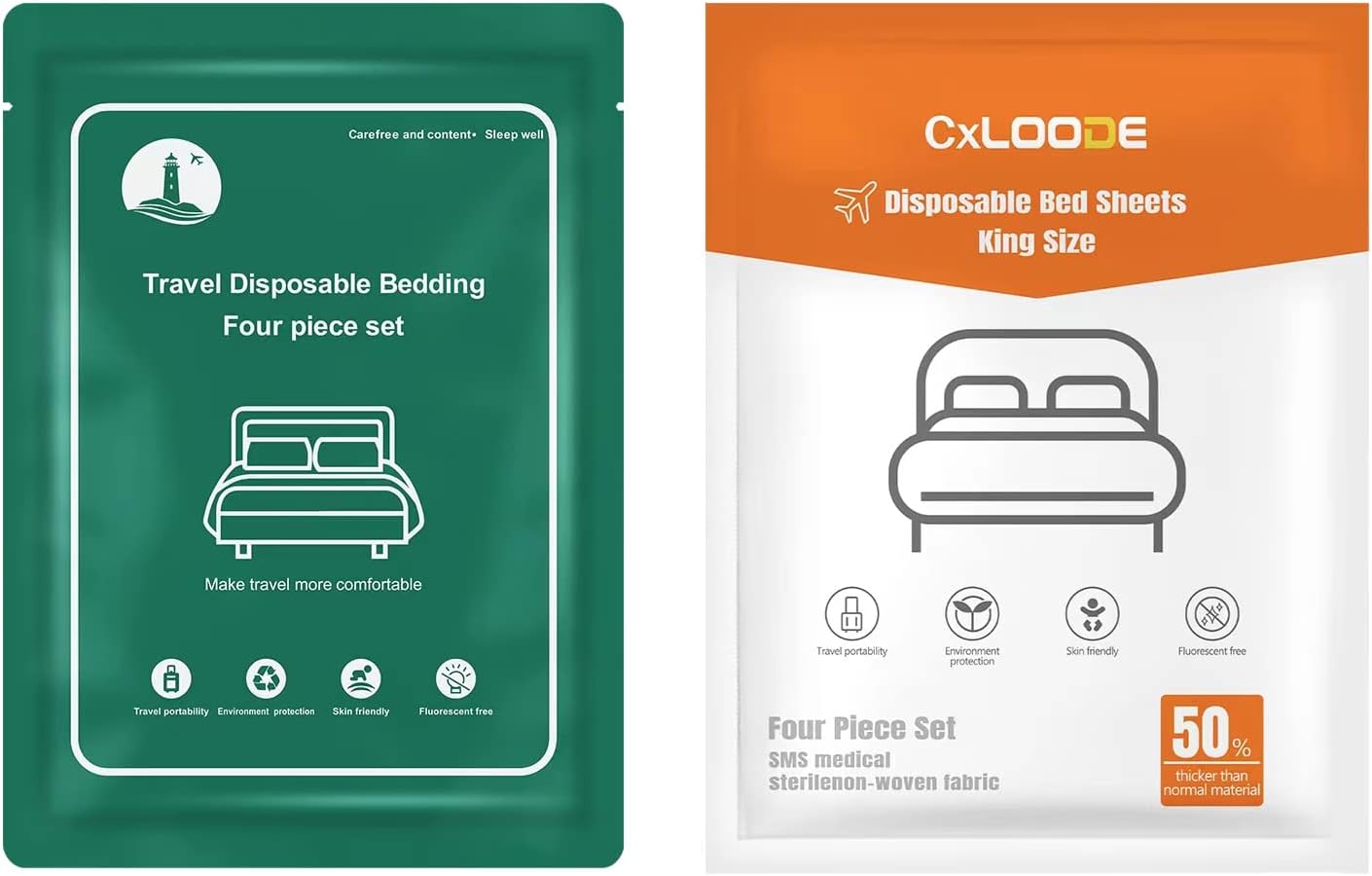 SLEEPING SAFE WHEN TRAVELING Using disposable bedding sheet set means you can avoid using uncleaned sheets, pillowcases at hotels and hospital. Our disposable bed sheet helps to block dirt, protect you from unclean bed sheet, pillow cases, comforters and blankets at hospital and hotels
