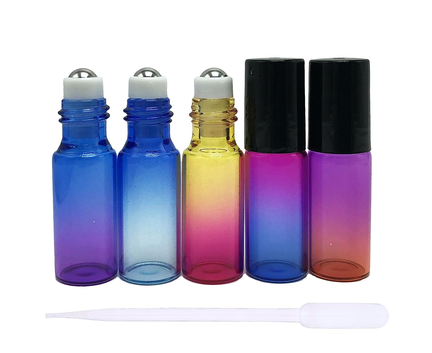 Pcs 5 ml Rainbow Color Glass Roller Bottles Roll-on Bottles Vial Container with Stainless Steel Roller Balls and Black Cap for Essential Oil Perfumes Liquid Aromatherapy+1pc 3 ml Dropper Included