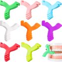 Specifications: Size: as shown in the picture Color: white, pink, green, orange, purple, yellow, red, and blue Material: silicone Package includes: 8 x Y shaped teeth aligners Warm notes: Please allow a little error on the size due to manual measurement.
