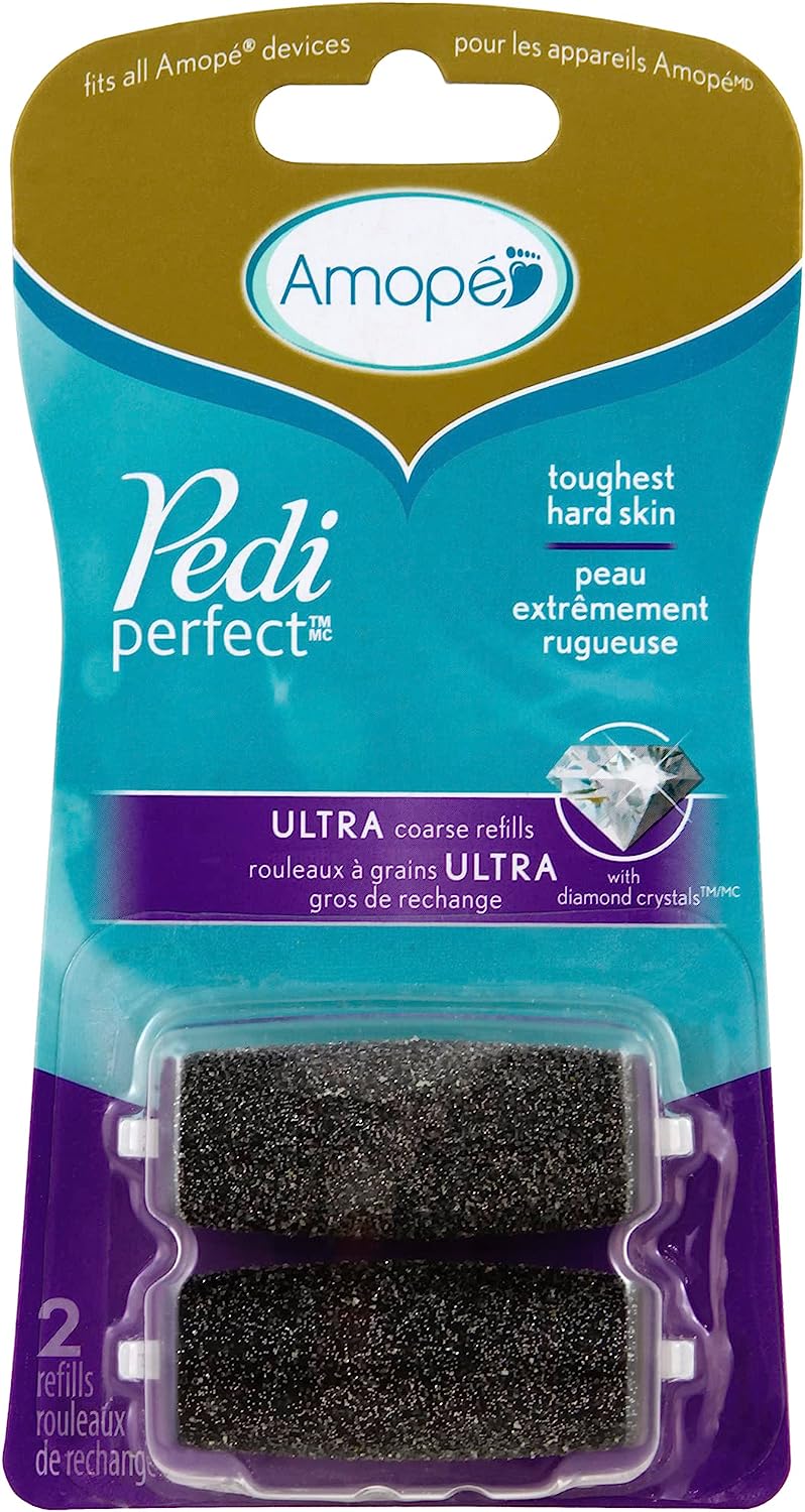Pack contents: 2 Regular Coarse Replacement Roller Heads specifically designed for use on the Amopé Pedi Perfect Electronic Foot File.