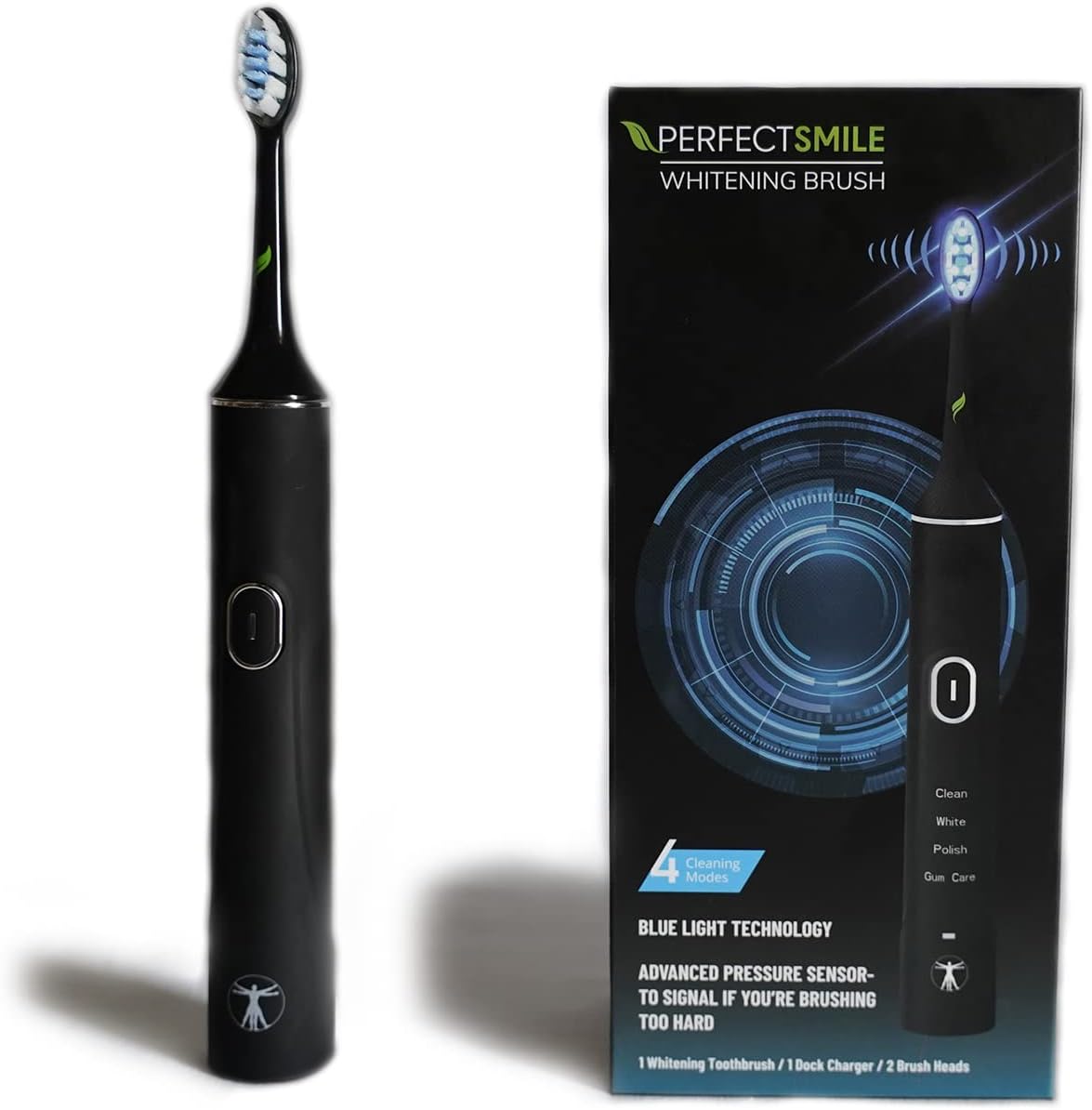 Perfect Smile Whitening Electric Toothbrush, Gets Teeth 3 Shades Whiter in 7 Days, Clinically Tested & Dentist Approved, LED Technology with 4 Brushing Modes
