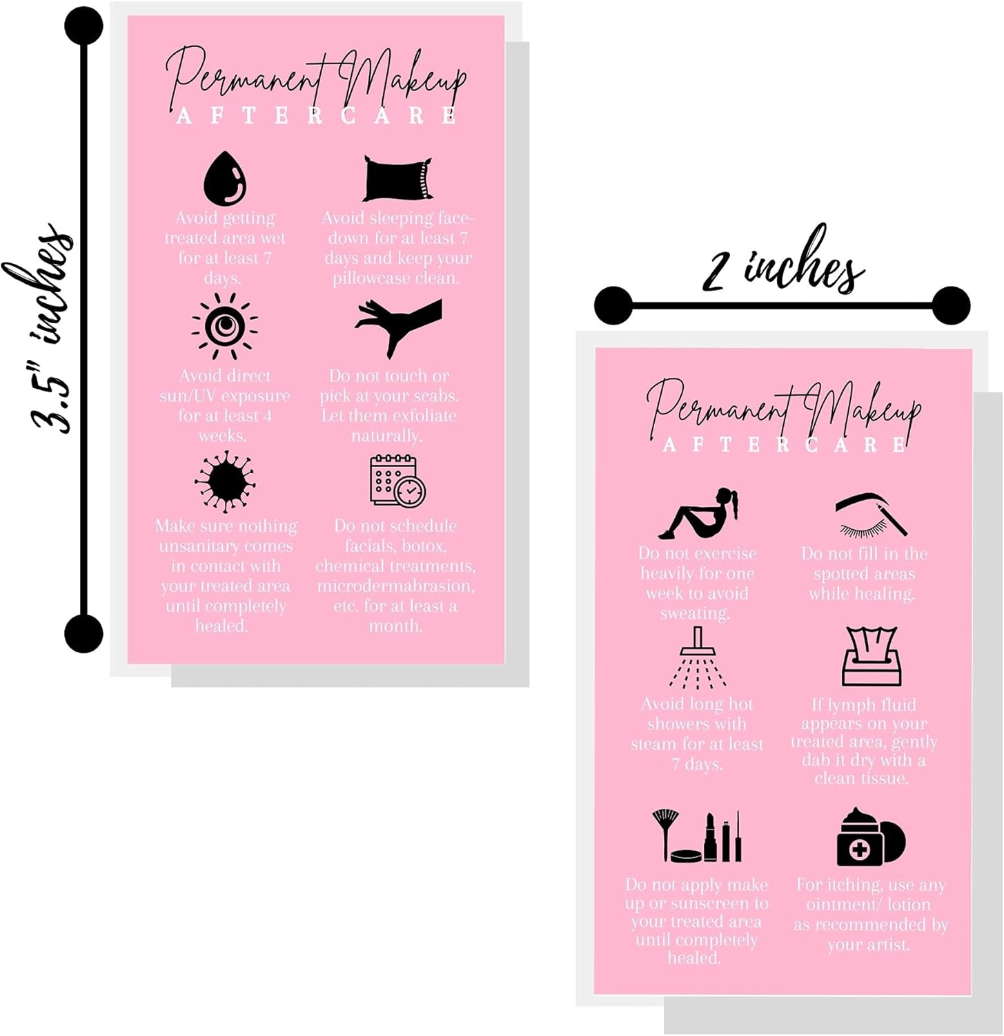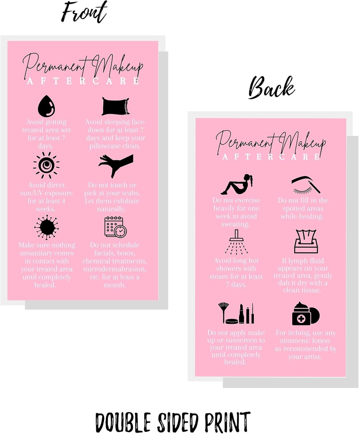 Printed front and back with permanent makeup PMU aftercare instructions.