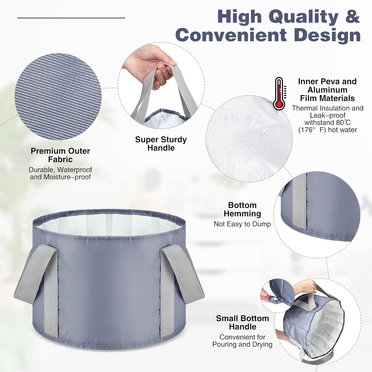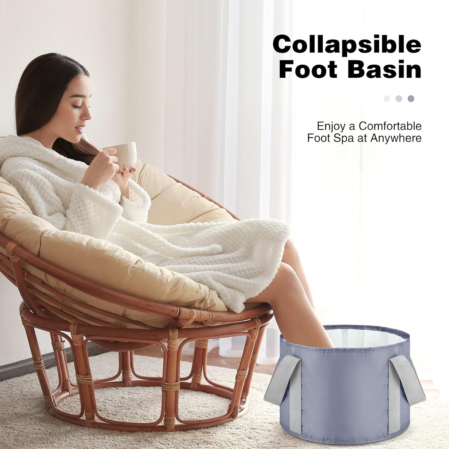 Features: Reasonable design: There are a small ring and handles of the wash basin for feet, which are convenient for hanging, drying, holding and pour the water.