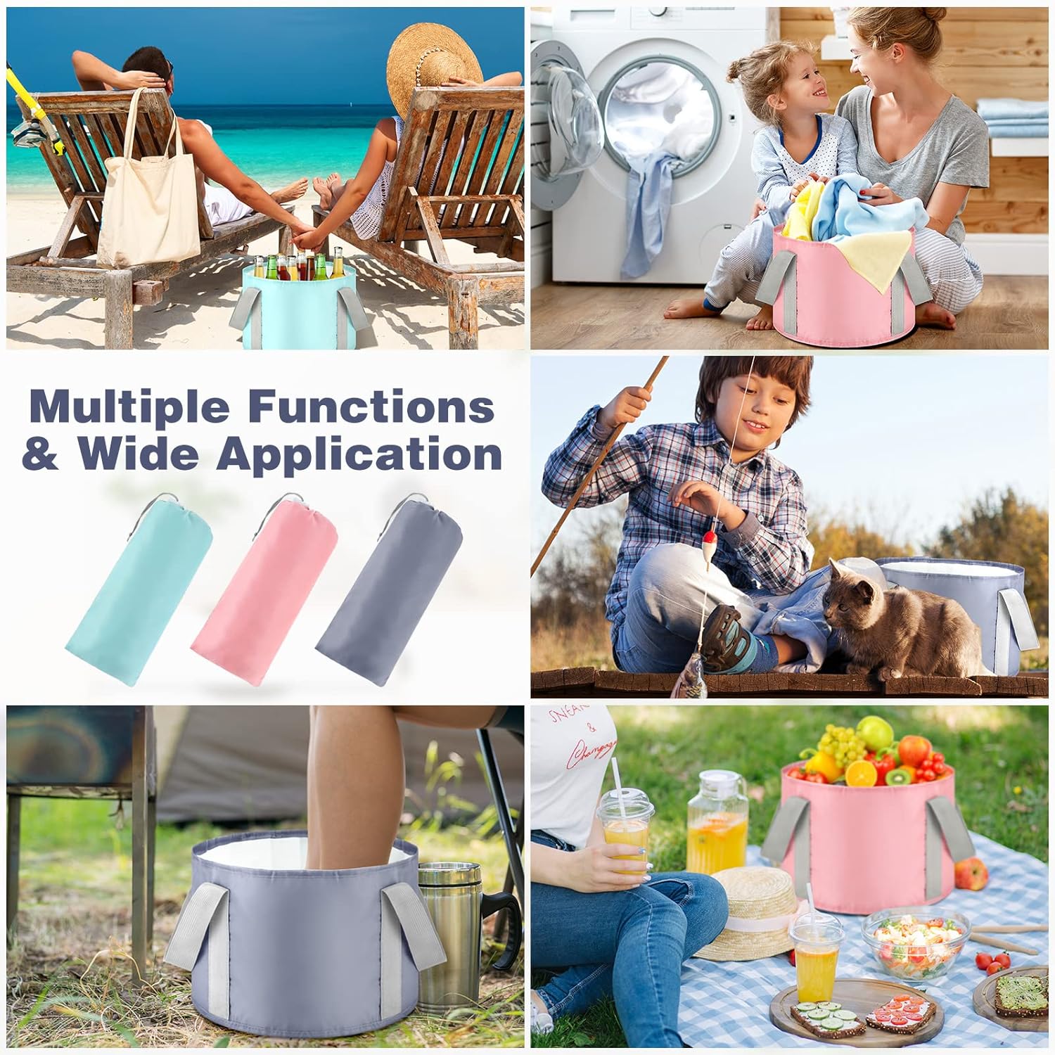 Specifications: Main material: polyethylene Color: pink, blue, and gray Capacity: about 14 L Size: About 11.