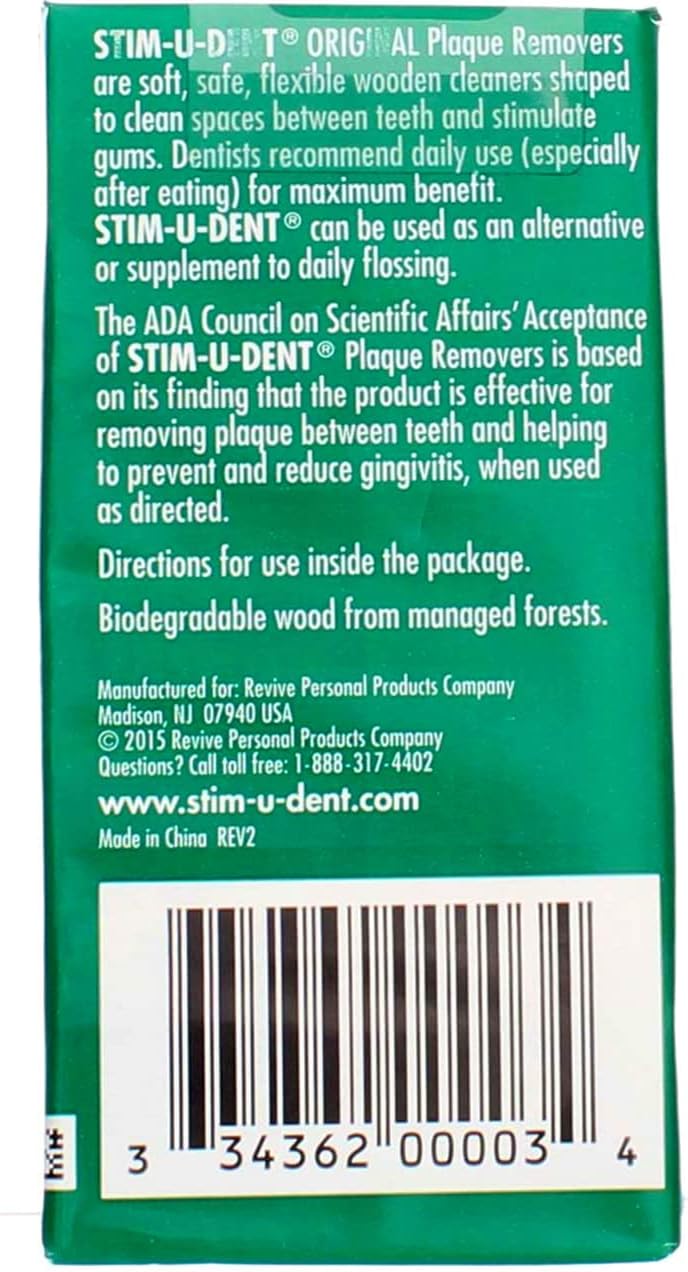 1. Moisten thoroughly in mouth to soften wood. 2. Insert between teeth with narrow flat side next to gums. 3. Use gentle in and out motion to clean between teeth. Do not force into tightly spaced teeth.