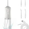 Cordless hose free water flosser with 5 jet tips. Teeth Cleaner Gift Set help you get a thorough cleaning teeth and helpful for curing periodontal disease.This water dental flosser helps you cleans away 99.99% of teeth stain food residue.