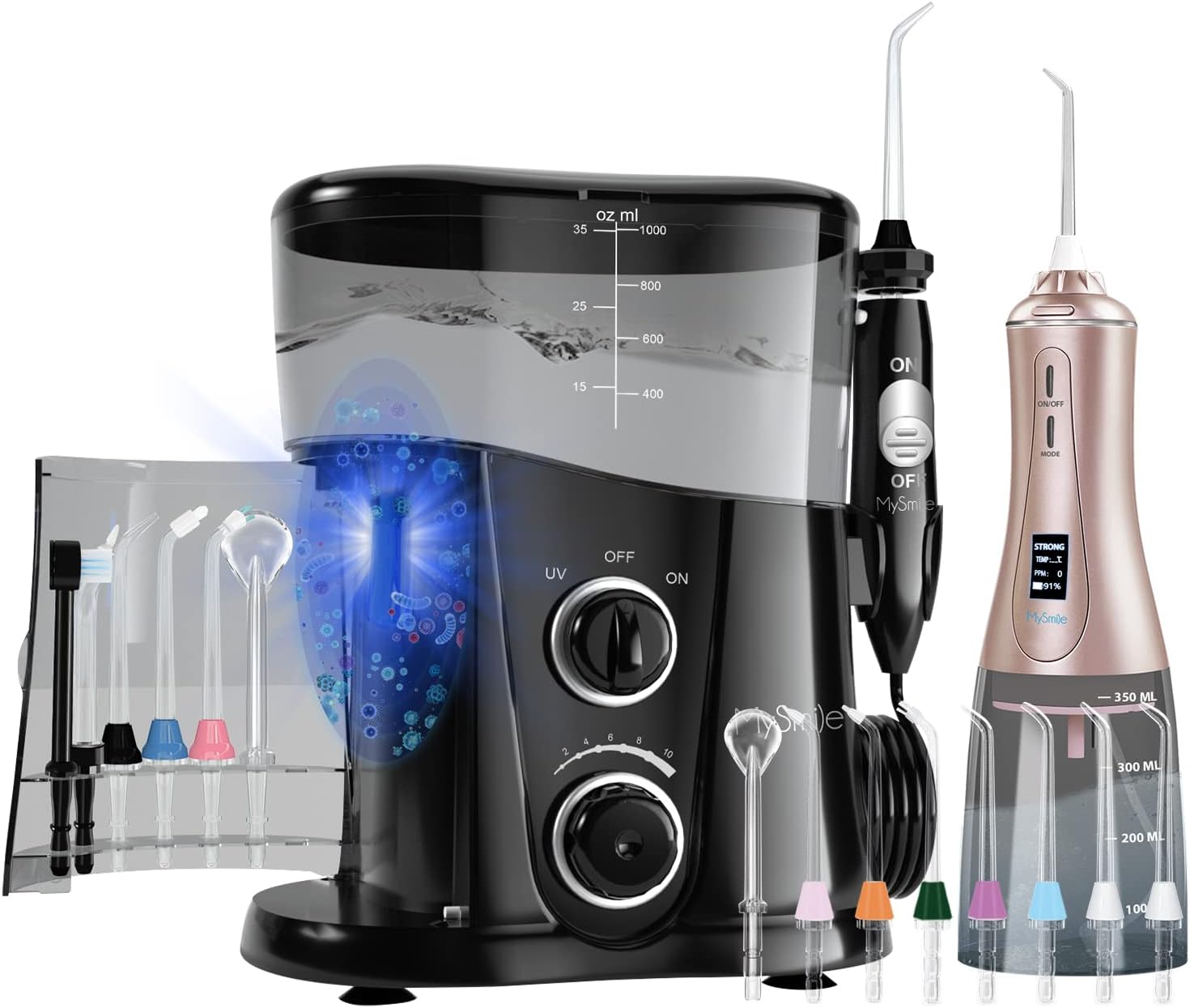 IDEAL WATER TEETH CLEANER SET – Get the 2 water flossers with the cordless one for convenient travel, and the countertop one for family use; An intelligent combination brings about thorough teeth cleaning and comprehensive oral health; You will absolutely enjoy the unexpected charming smile with everyday simple and effective timed flossing