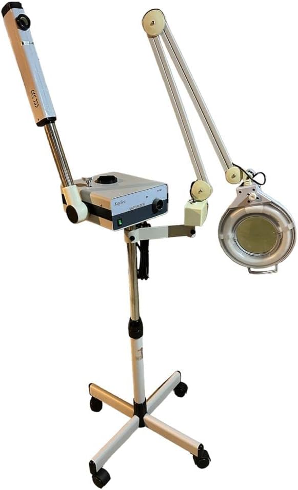 This 2 in 1 machine comprises a facial steamer and magnifying lamp, providing a comprehensive solution for facial treatments.