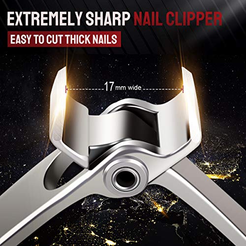 WIDE JAW FOR THICK NAILS- Oversize nail clippers, 180 degree wide jaw opening nail clipper for thick nails up to 17MM is suitable for extra thick fingernails and tough toenails.