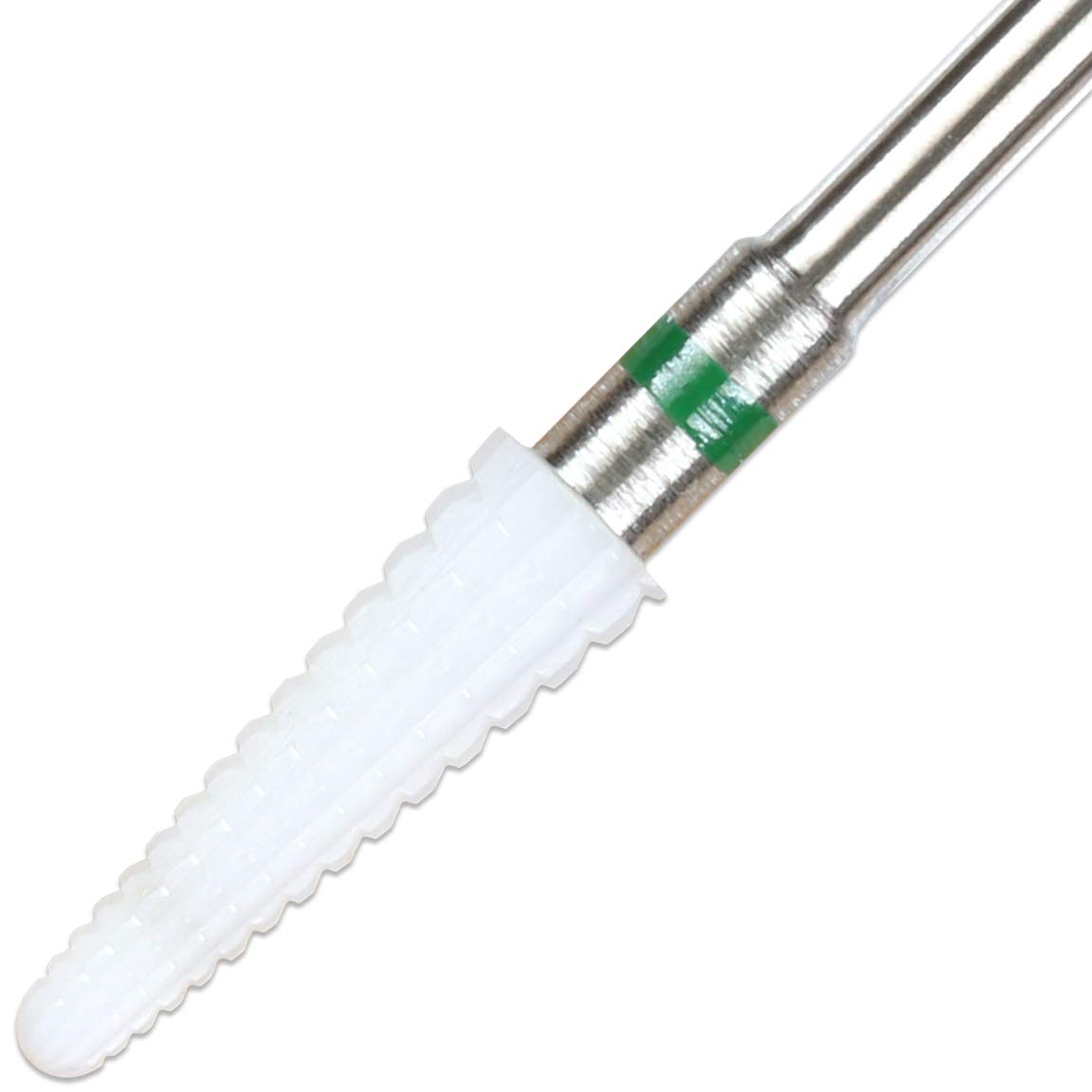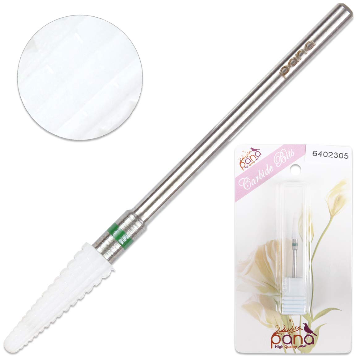 The cone shaped carbide drill bits are rounded at the top with skinny barrels to help reach the problem areas that need to be smoothed out as quick as possible that is under the nail as well as closer to the cuticles and sidewalls.