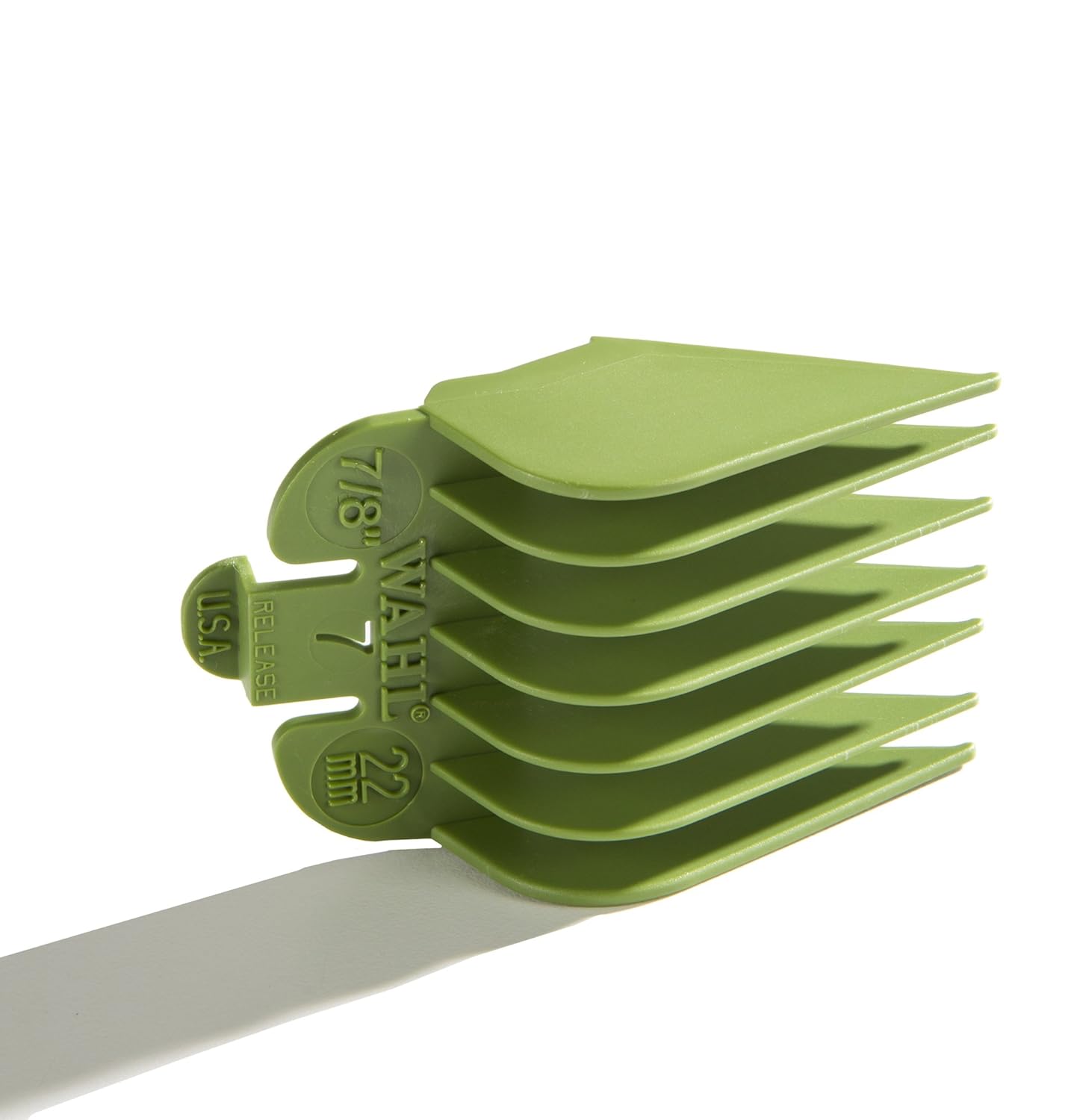 In the entire line of Wahl Professional products, you can always rest assured that the #7 attachment is Green and is 7/8”.