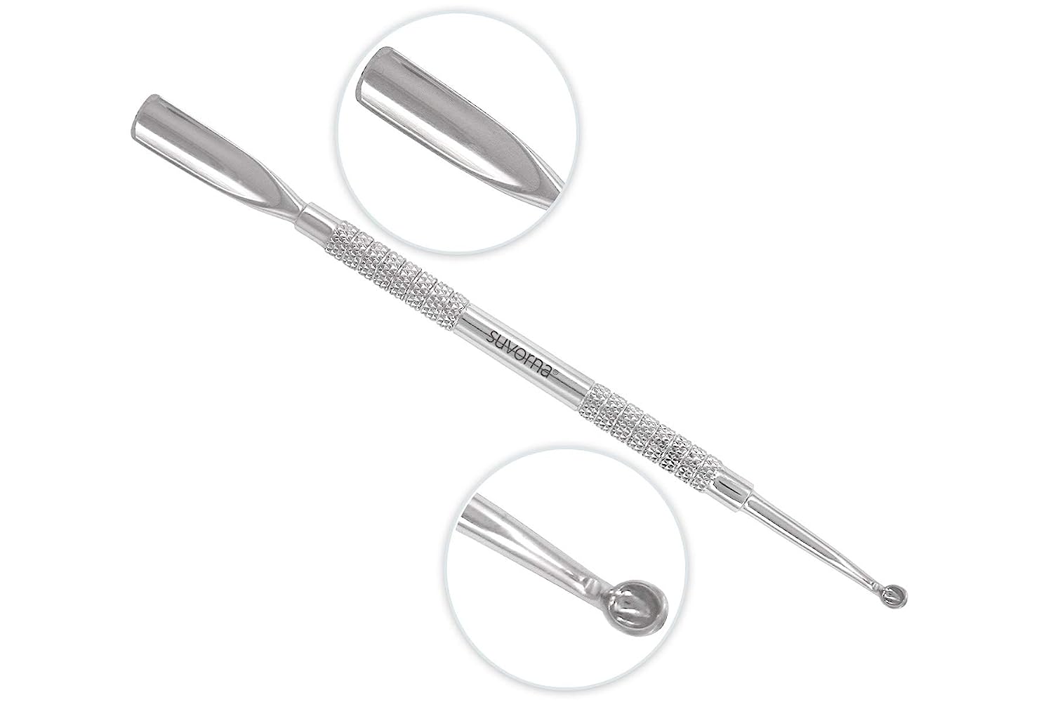 Prime quality stainless steel nail cuticle pusher: suvorna cuticle tools are manufactured by high quality Japanese stainless steel that makes them water-resistant, dust resistant, rustproof and corrosion-free tools. Due to its premium material, the metal cuticle pusher is tarnish-free and can be used for a long time, easy to clean, you could sterilize it with alcohol or any other disinfectant liquid to maintain nail care.