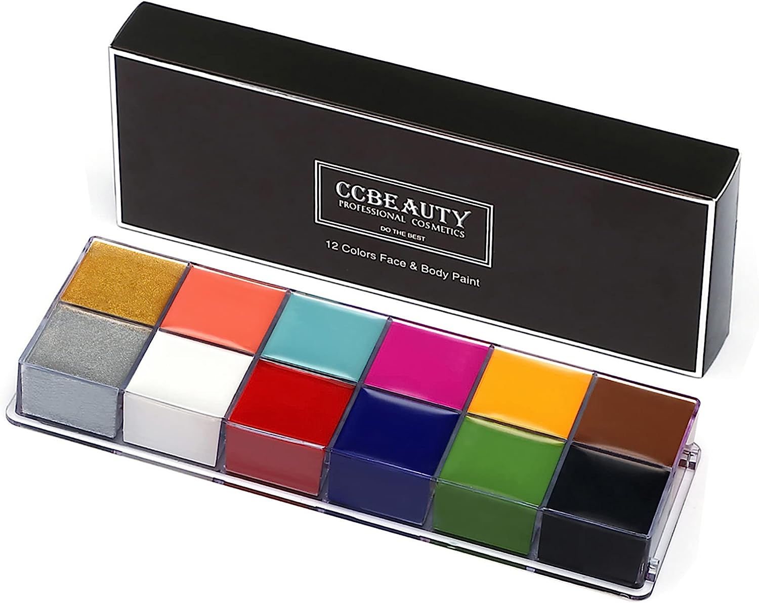 Professional Face Body Paint Oil Based, 12 Colors Halloween Body Paint Palette Art Party Fancy Makeup, Non Toxic and Easy On Off,Large-Capacity Cases, Deep