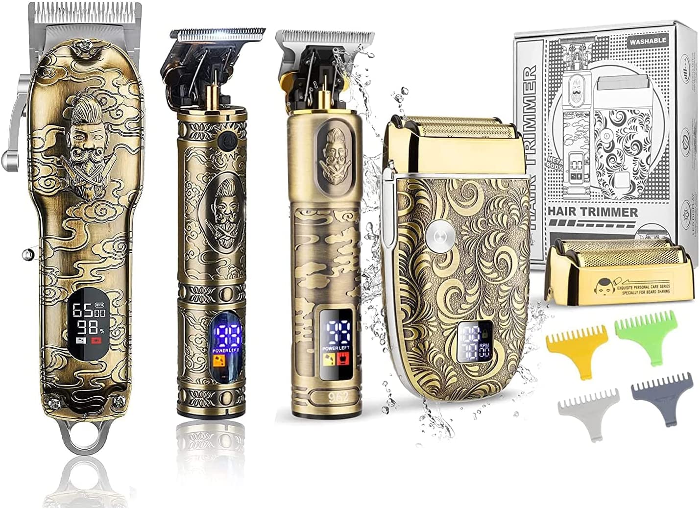 • MORE PROFESSIONAL FOR HOME USE & BARBER: Our men”s grooming kit has been tested in barbershops and many gentleman around the world, We have been recognized and trusted by our customers. Our barber clippers professional sets give you the versatility to shape, shave and produce the most defined look in the palm of your hands.
