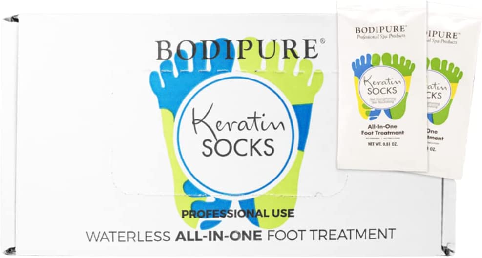 PROFESSIONAL USE FOR BEAUTY AND NAIL SALONS: Professional Keratin Socks are the first revolutionary, waterless, all-in-one pedicure socks treatment to incorporate keratin, a key protein found in skin, nails, and hair. Pamper your clients by upgrading your pedi services. Our Keratin Socks can be used during facials, massages, and other spa treatments.