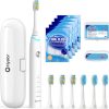 High frequency sonic vibrations (30,000 – 40,000 movements per minute) 3 cleaning modes – White: Exceptional tooth and gum cleaning – Clean: Thorough cleansing for sensitive areas – Massage: Gentle stimulation of gums Smart LED autonomy & charging indicator Super waterproofness (IPX7 standard) & non-slip handle Up to 4 weeks of brushing in a single charge Interchangeable brush head Portable and convenient for carry,easy and convenient for use at home or traveling.