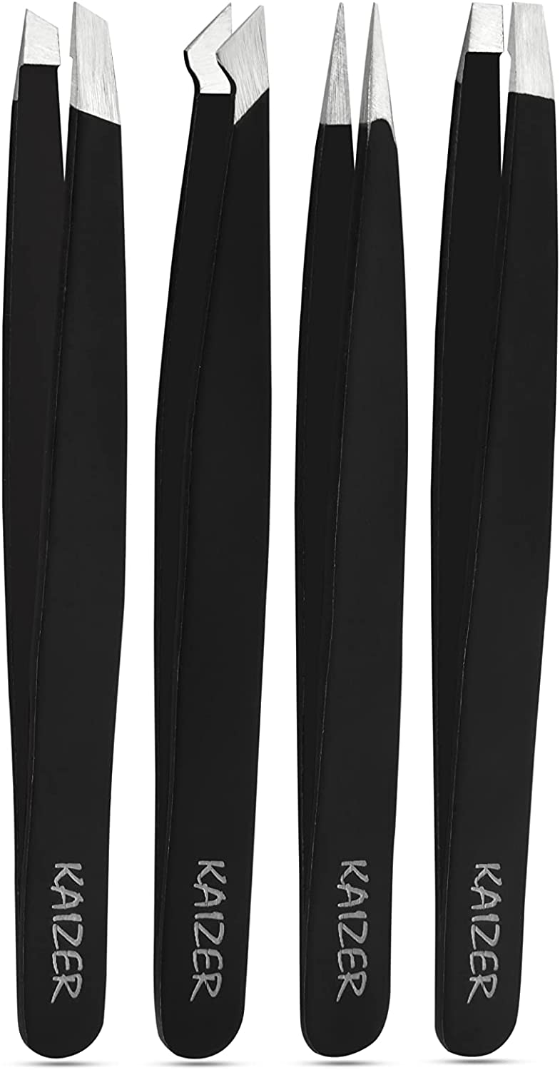 Professional Stainless Steel Tweezer Set for Eyebrows – Precision Tweezers for Ingrown Hair, Blackhead & Splinter | 4 Pcs, Black, 3.5 x 4.5 x 0.50 (KZR-01) : Beauty & Personal Care