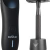 Includes clipper, recharging stand, adapter, 4 attachments, brush and oil .