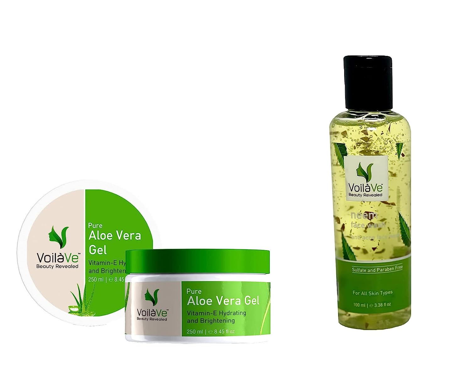 Pure Aloe Vera Gel with Aloe Vera Face Wash with Anti Aging Neem Crush, Hydrating Facial Cleansing Gel for Sunburn Relief, Acne, Skin Care
