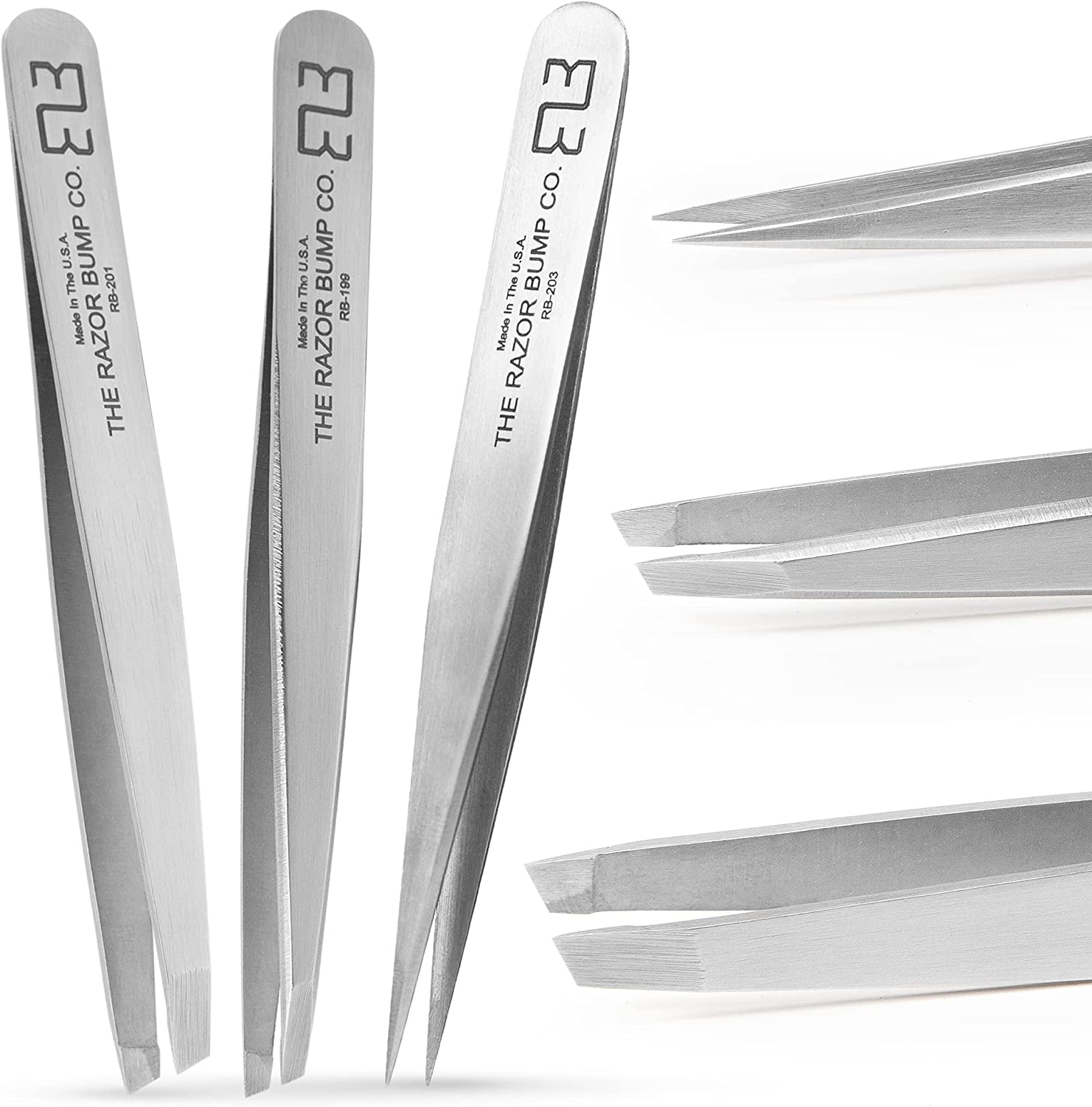 Razor Bump Co. Tweezer Set, Made in USA, 3-Piece Artisan Tweezers for Eyebrows and Ingrown Hair Removal – Pointed Tweezers and Slant Tweezers Handcrafted of Rustproof, Non-Irritating Stainless Steel : Beauty & Personal Care