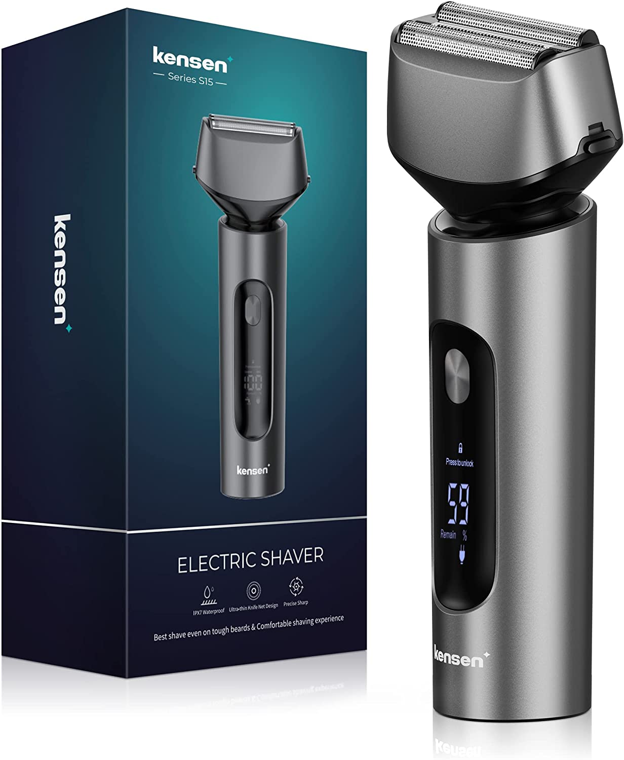 Razor for Men, KENSEN IPX7 Waterproof Foil Electric Shavers, Wet & Dry Shave, Cordless Rechargeable Men Face Beard Shavers, Portable Travel Men”s Electric Razors