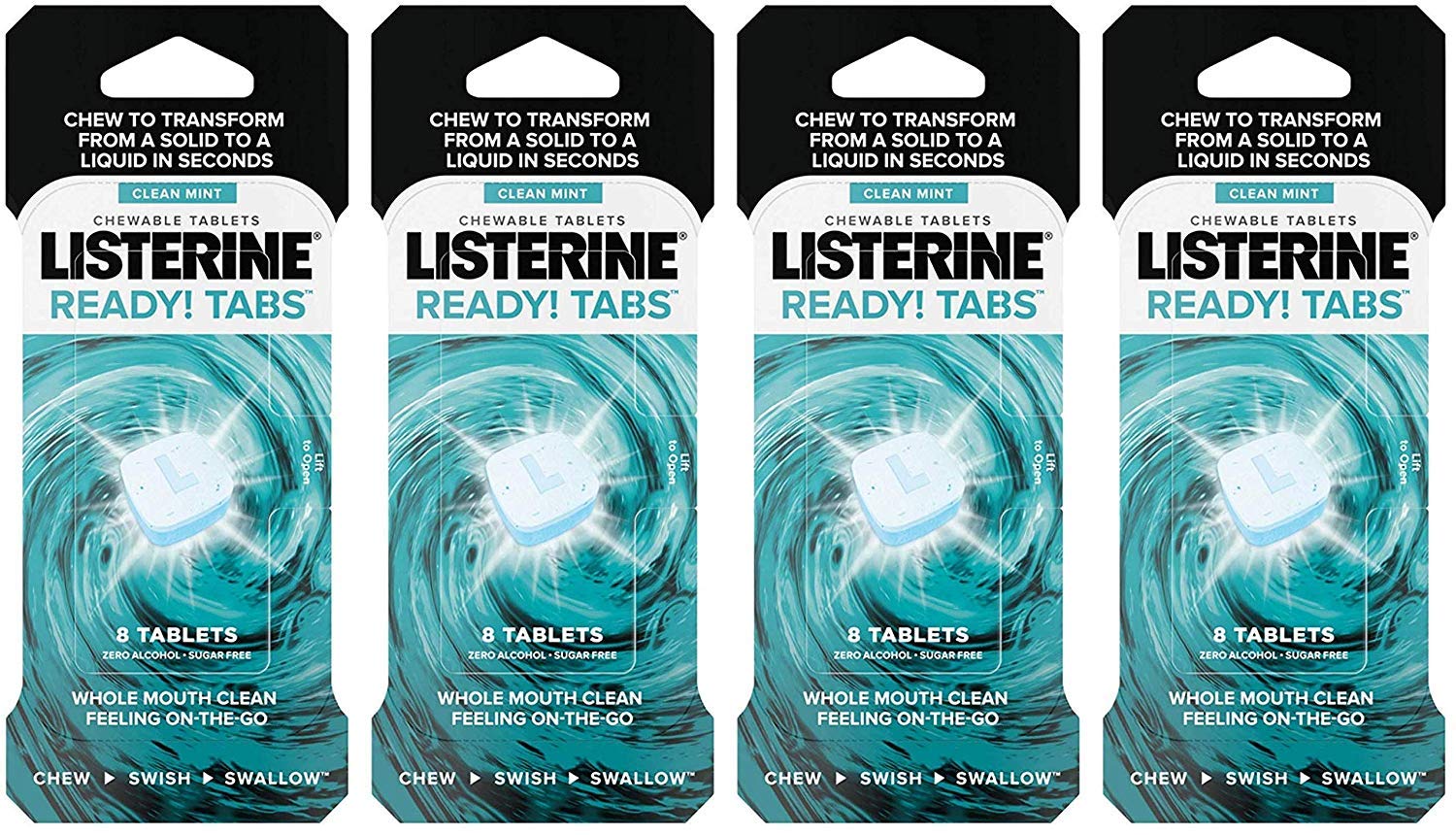 Listerine Ready! Tabs Chewable Tablets in Clean Mint Flavor (8 Count Chewable Tablets Per Package).