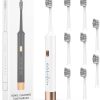 High frequency sonic vibrations (30,000 – 40,000 movements per minute) 3 cleaning modes – White: Exceptional tooth and gum cleaning – Clean: Thorough cleansing for sensitive areas – Massage: Gentle stimulation of gums Smart LED autonomy & charging indicator Super waterproofness (IPX7 standard) & non-slip handle Up to 4 weeks of brushing in a single charge Interchangeable brush head Portable and convenient for carry,easy and convenient for use at home or traveling.