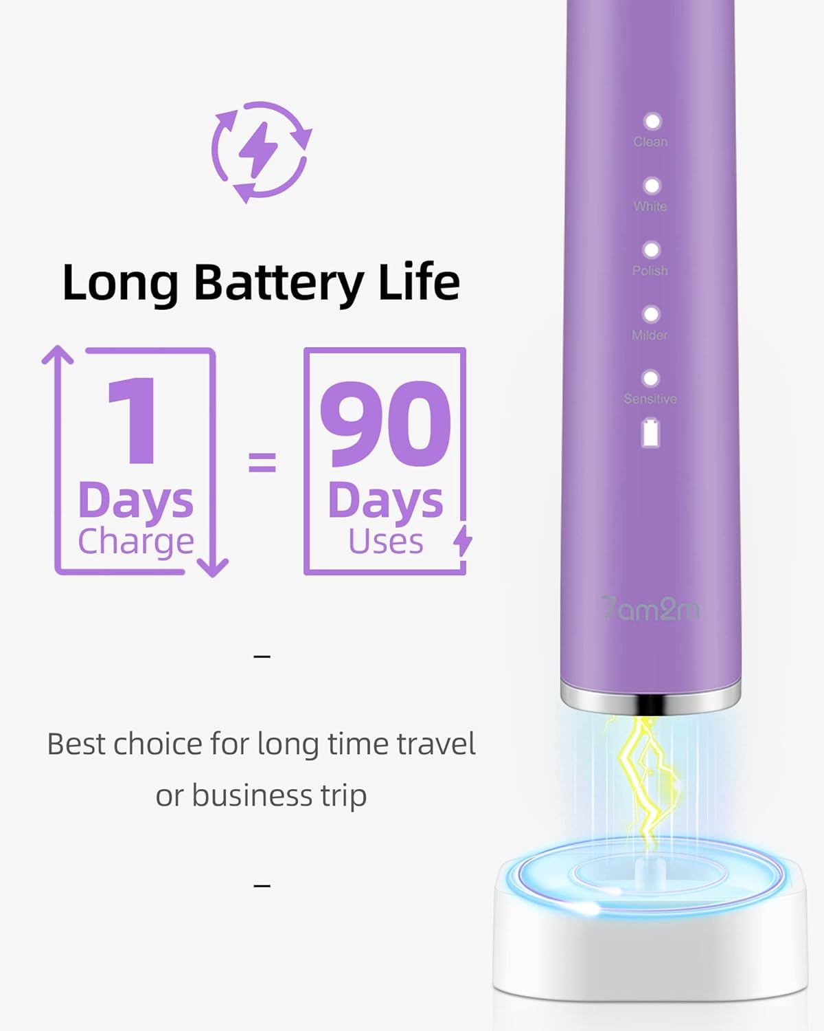 7am2m Sonic Electric Toothbrush adopts the advanced sonic technology, produces 31,000 brush strokes per circle for a powerful dynamic cleaning action.