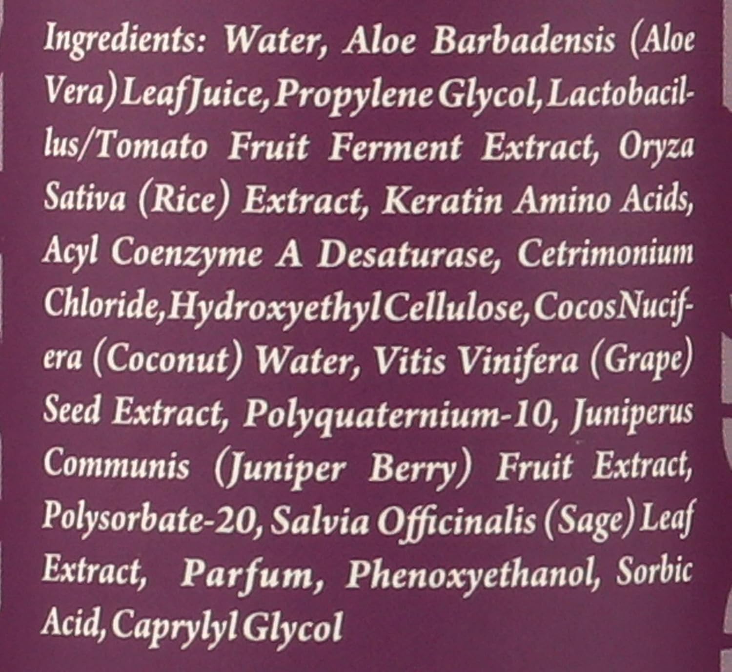 Aloe Leaf Juice, Coconut Water, Grape Seed Extract. 360° Curls Complex W/tomato Extract & Amino Acids: Hydrate + Strengthen + Define;water, Aloe Barbadensis (Aloe Vera) Leaf Juice, Propylene Glycol, Lactobacillus/tomato Fruit Ferment Extract, Oryza Sativa (Rice) Extract, Keratin Amino Acids, Acyl Coenzyme A Desaturase, Cetrimonium Chloride, Hydroxyethylcellulose, Cocosnucifera (Coconut) Water, Vitis Vinifera (Grape) Seed Extract, Polyquaternium-10, Juniperus Communis (Juniper Berry) Fruit Extract, Polysorbate-20, Salvia Officinalis (Sage) Leaf Extract, Parfum, Phenoxyethanol, Sorbic Acid, Caprylyl Glycol