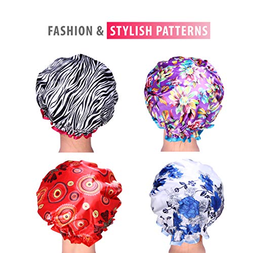 ELEGANT LOOK – Our cute shower cap comes in 4 fashionable patterns to keep you in style and light up your mood with our vibrant colors; Our designer fun pattern pack makes it perfect as a kids shower cap; We ensure that our shower hat will meet your expectations; If you have any issues with our plastic shower cap set, do not hesitate to contact us and we will be more than happy to ensure you have a positive experience