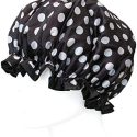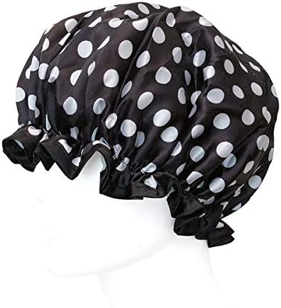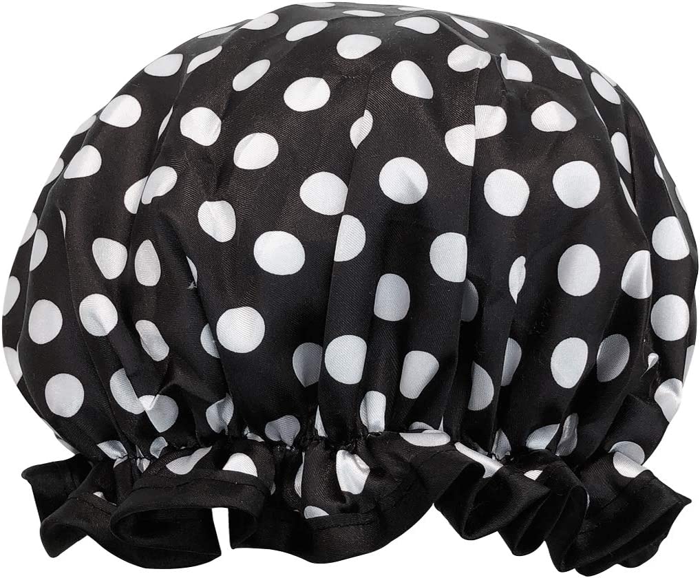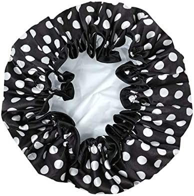 Reusable Womens Waterproof Shower Caps For Long Hair, Black And White Dots
