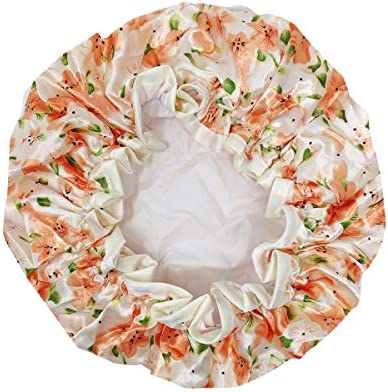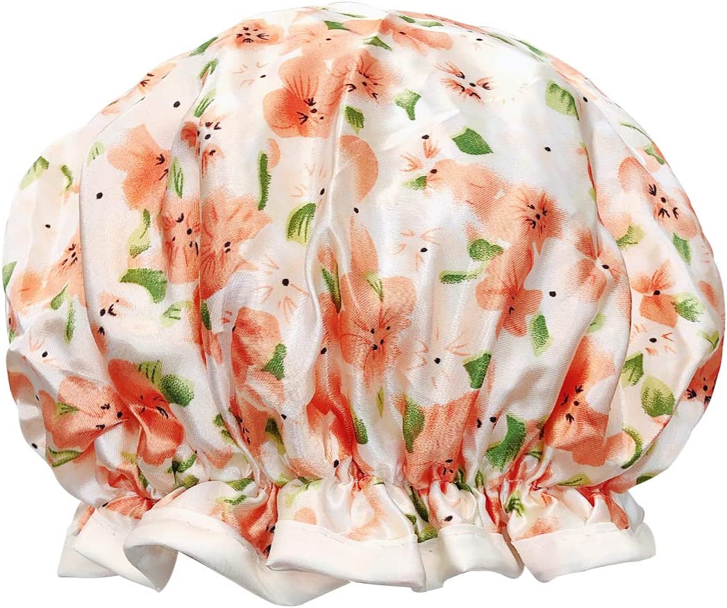 Reusable Womens Waterproof Shower Caps For Long Hair, Peach Floral