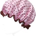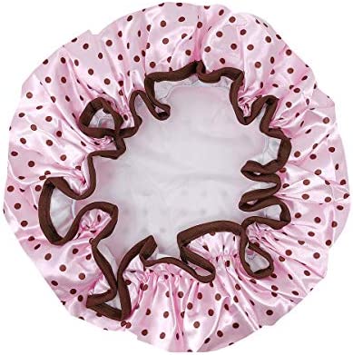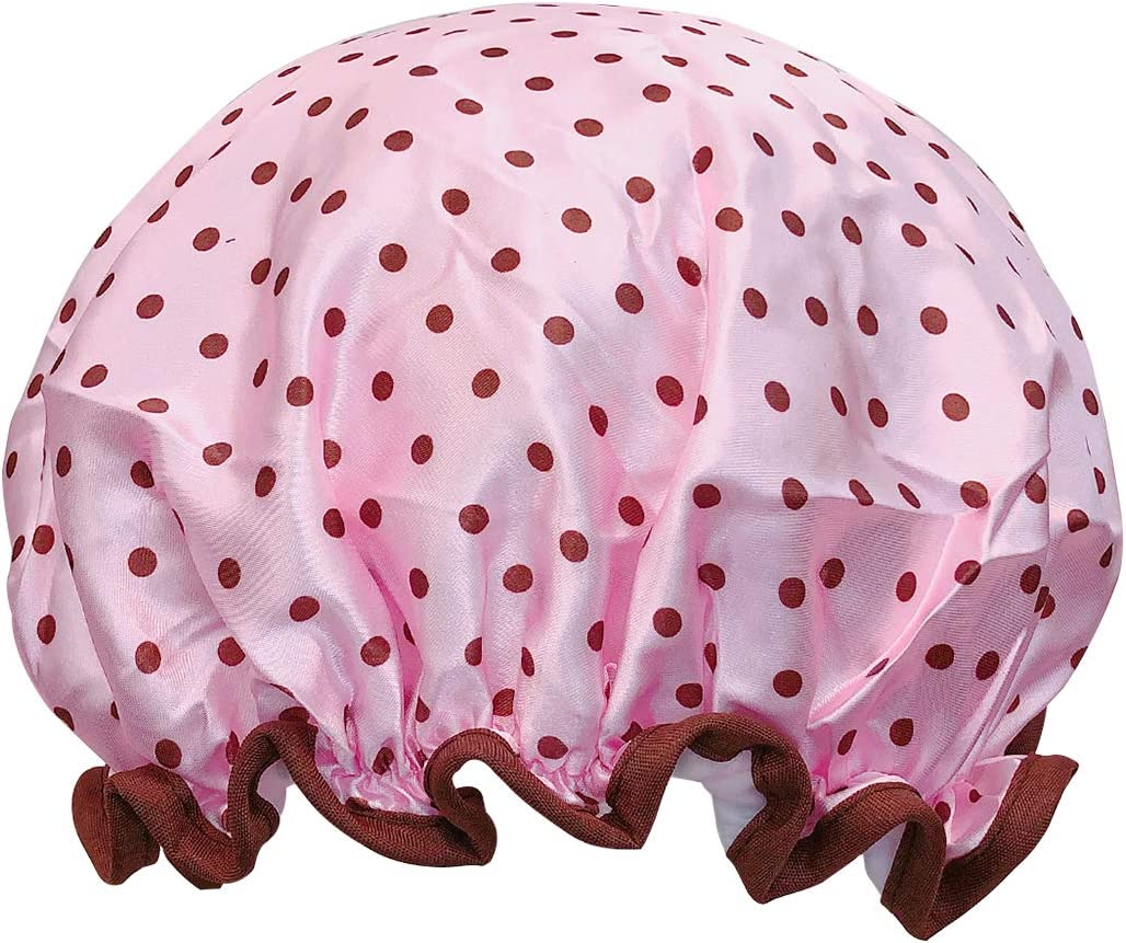 Reusable Womens Waterproof Shower Caps For Long Hair, Pink Polka Dots