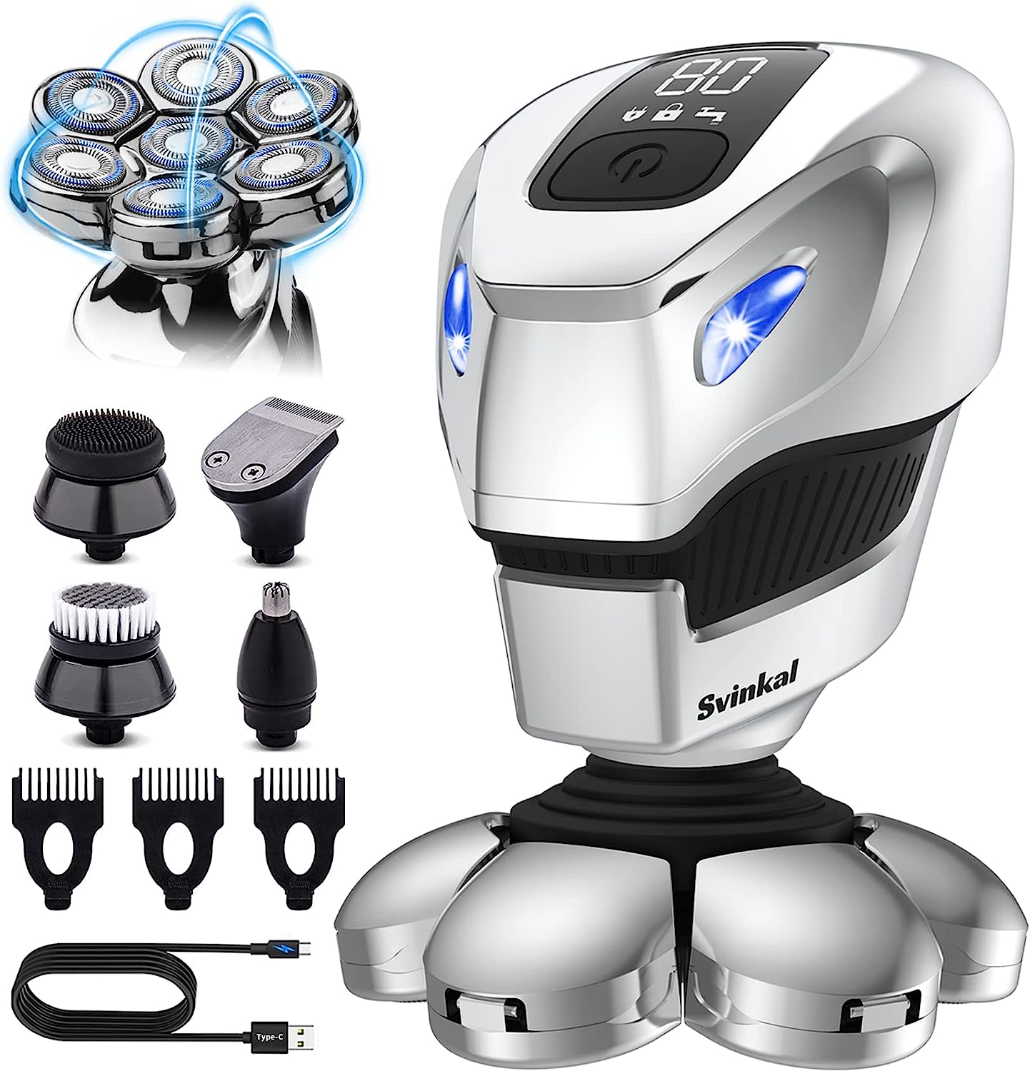 Rotary Shaver, Type-C Men”s Bald Head Electric Shaver, 7D Cool Modern Design Skeleton Robot Shaver, 5 in 1 Beauty Set for a Haircut, Shaving
