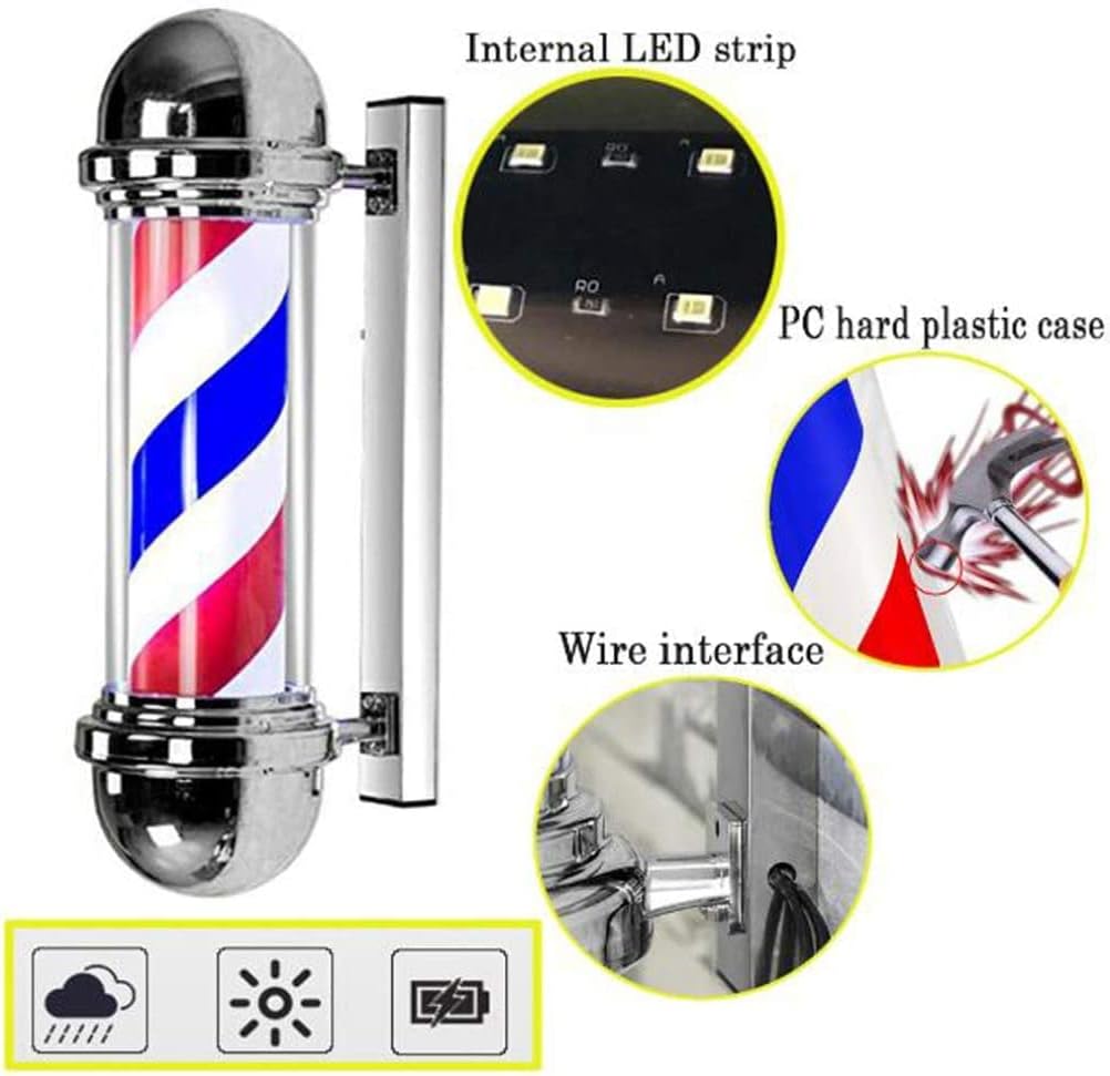 Rotating Barber Pole LED Light, Rotating Red, White and Blue Lights for Hair Salon, Wall-mounted Waterproof LEDs for Outdoor Hairdressing