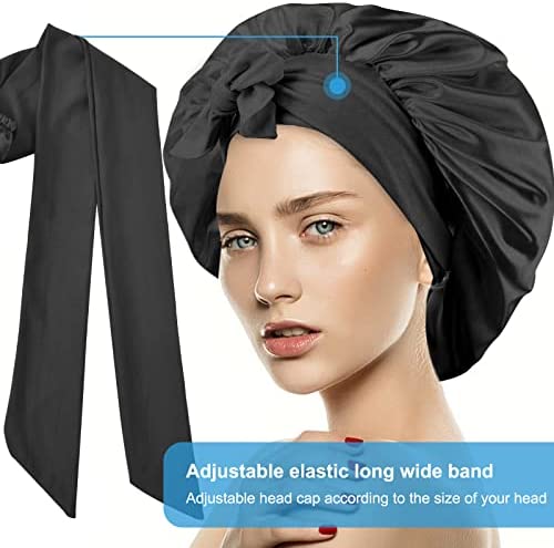 Comfortable hair cap: high elastic soft silk material is more close to the skin, comfortable and non-irritating to the skin, Elastic and adjustable wide side straps to tie knots on the head, wide skin-frendly band, little free of pressure on head, you can adjust to your most comfortable size.