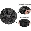 Satin Bonnets, Adjustable Satin Bonnets For Women, Double Layer Large Sleeping Silk Bonnet, Soft Sleep Bonnet For Women Girls Curly Natural Hair Night Sleep Cap(Black)