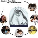 Satin Line Sleep Cap For Curly Hair Silky Satin Sleeping Turbans For Frizzy Hair Slouchy Cap Black