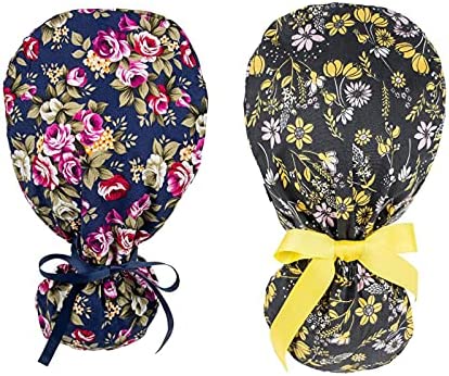 Scrub Hats Ponytail Pouch & Button Design: This is a comment from a customer: (It is a very good solution for people with long hair. Hair conveniently goes into the hair pouch and it gets all my hair covered, which is important for me in the area that I work. Buttons for the mask keeps my ears spared of hurting in the end of the day. I like the designs as well ) makes you look professional and brisk,When working,scrub caps it can prevent falling hair, and the production is more safe and hygienic scrub caps women [Premium Material & Adjustment] 100% high-grade cotton fabric, light, comfortable & breathable, fast dry. FOHEEL Style Bouffant hat have an elasticized band and ties in the back that can be worn two ways: Tied loosely in back or Tied up in a ponytail. One size