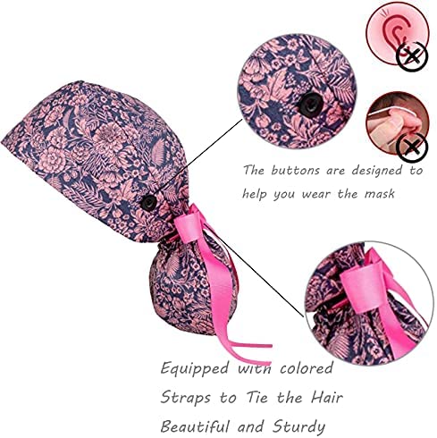 Scrub Caps Women With Buttons Nurse Hat Scrub Cap Ponytail Nursing Hats Long Hair Working Cap With Buttons And Ribbon Tie Halloween Chemo Hats Cancer Headwear Head Scarfs