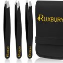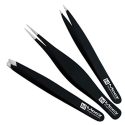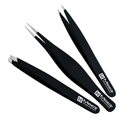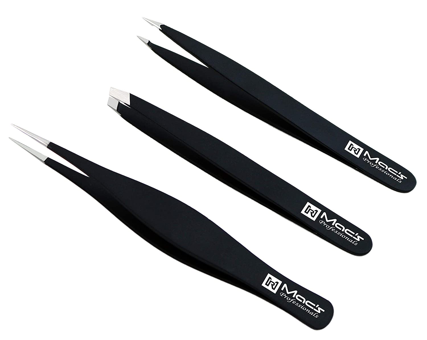 Set;- For Eyebrow Plucking, Ingrown Hair -Best For Eyebrow Hair, Facial Hair Removal – Stainless Steel Precision Sharp- Pointy Ends Meet Perfectly. (3 Pcs Black Tweezers Set)
