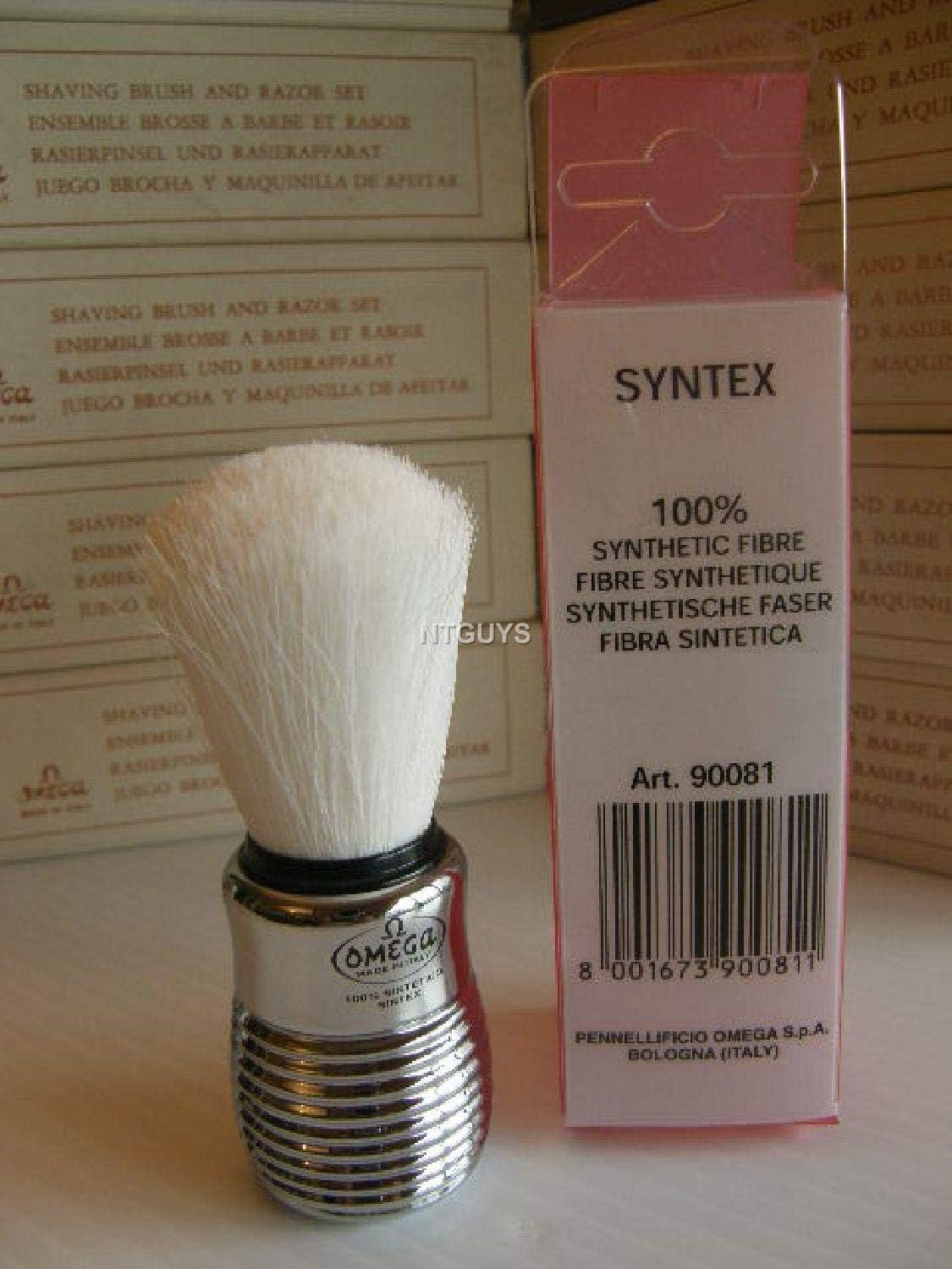 100% Synthetic Syntex nylon bristle shaving brush with a Chrome Effect ABS handle.