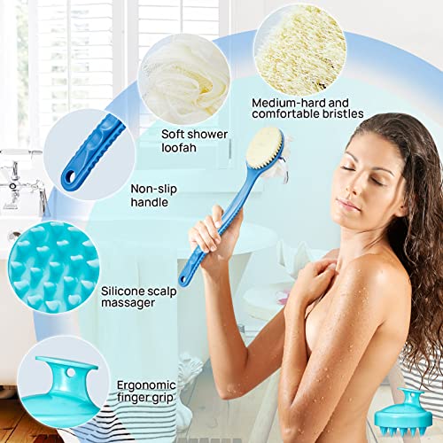 Shower brush set: includes a long-handled shower brush and a hair shampoo brush.