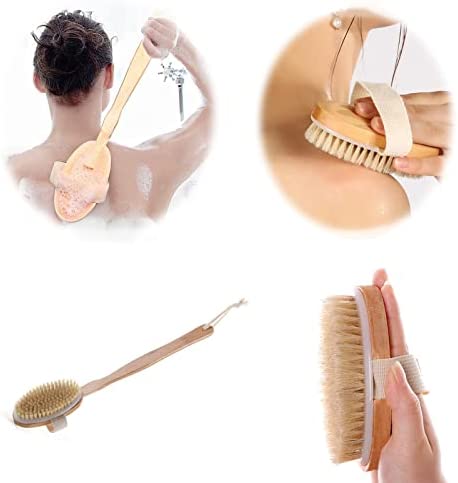 Shower Brush With Long Handle, Back Scrubber For Shower, Exfoliating And Cellulite Treatment, Lymphatic Drainage And Blood Circulation Improvement, Detachable Natural Bristle Bath Brush.