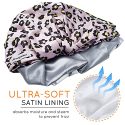 Shower Cap For Women, Reusable Double Layer Shower Cap For Long Hair, Large Adjustable Cute Bowknot Lined Bath Cap, Waterproof Luxury Hair Cap For All Hair Style, Wide Elastic Band (Leopard – Pink)