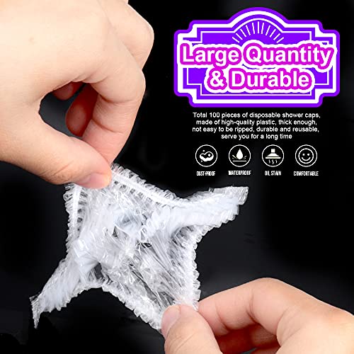 Large Quantity & Durable: Total 100 pieces of disposable shower caps, made of high-quality plastic, thick enough, not easy to be ripped, durable and reusable, serve you for a long time.