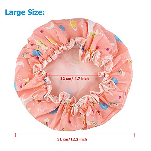 Shower Caps, 3 Pack Bath Cap For Women Waterproof & Adjustable Double Layered Shower Cap (Multi-Colored6)