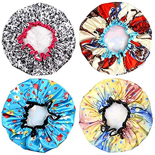 Cute Look: 4 Different pattern with vivid color shower caps will definitely meet your need if you have trouble in making choices