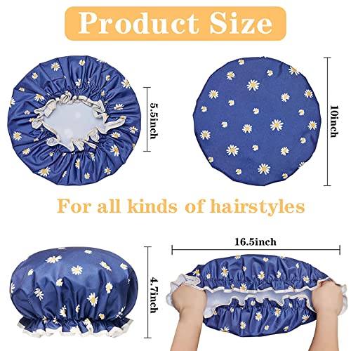 Shower Caps,4 Pack Shower Caps For Women,Waterproof Hair Cap For Shower,Double Layer Shower Hair Bath Cap,Reusable Bathing Shower Hat,Elastic Peva Lined Bath Shower Caps For Long Short Curly Thick Hair