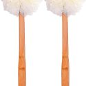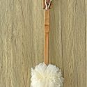 Shower Loofah Body & Back Scrubber – Exfoliating Loofah Luffa Bath Brush On A Stick – With Long Wooden Handle Back Brush For Men & Women – Easy Reach Body Wash & Lotion Applicator( 2 Pack- White)